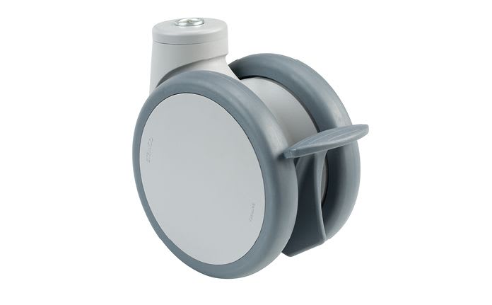 A standard single large twin wheel rubber castor with toe brake for couches. Compatible with Plinth Medical couches.