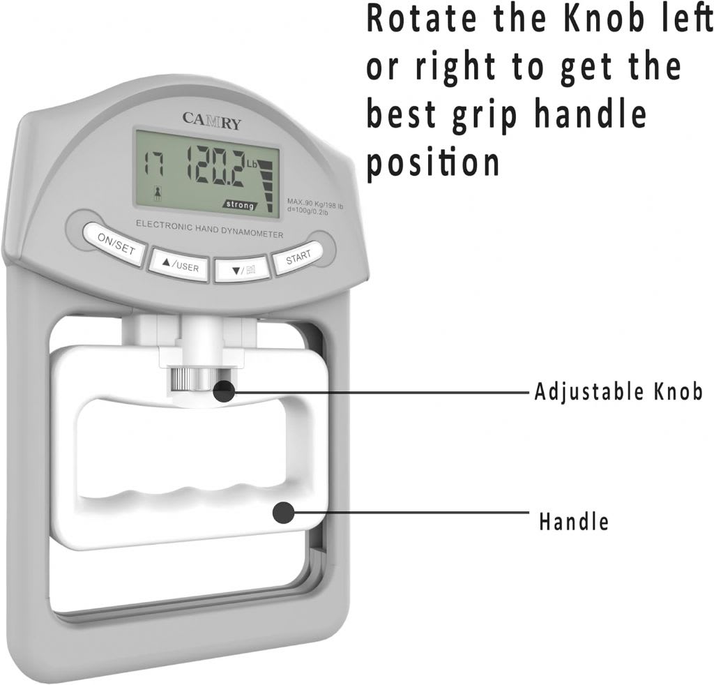 ACCURACY - Equipped with high precision strain gauge sensor, the hand dynamometer gives you accurate momentary digital reading of gripping power. Measuring Capacity: 198lbs / 90kgs; Division: 0.2lbs / 0.1kgs
