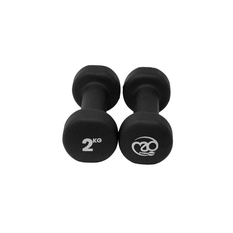 Time to build up a sweat! These 2kg dumbbells are a great addition to any home or commercial gym. They can be used for many different workout styles from aerobics, Pilates, Barre, or physiotherapy and rehabilitation use. They are coated in a soft neoprene which provides great grip so they won't slip as you sweat while also being more comfortable to hold. Another great design feature of these neoprene dumbbells are the flat bottoms, to help them from rolling around as you place them on the floor inbetween sets!