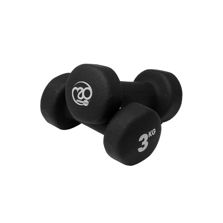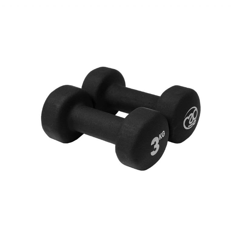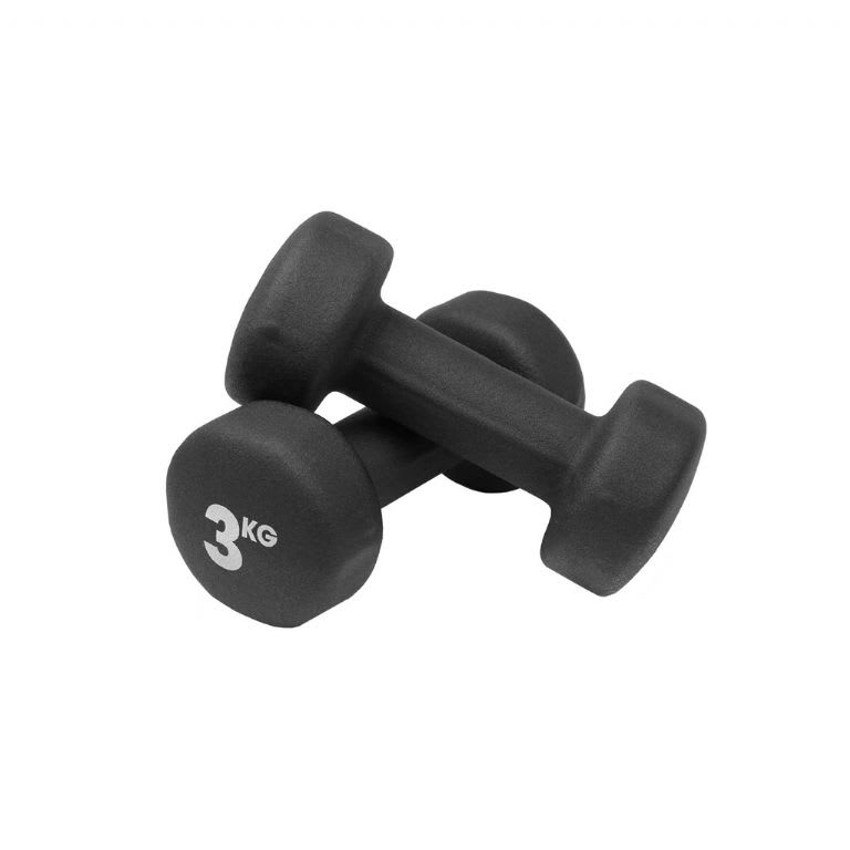 Time to build up a sweat! These 3kg dumbbells are a great addition to any home or commercial gym. They can be used for many different workout styles from aerobics, Pilates, Barre, or physiotherapy and rehabilitation use. They are coated in a soft neoprene which provides great grip so they won't slip as you sweat while also being more comfortable to hold. Another great design feature of these neoprene dumbbells are the flat bottoms, to help them from rolling around as you place them on the floor inbetween sets!