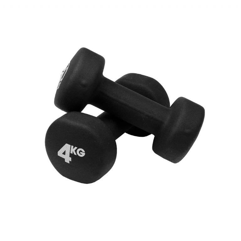 Time to build up a sweat! These 4kg dumbbells are a great addition to any home or commercial gym. They can be used for many different workout styles from aerobics, Pilates, Barre, or physiotherapy and rehabilitation use. They are coated in a soft neoprene which provides great grip so they won't slip as you sweat while also being more comfortable to hold. Another great design feature of these neoprene dumbbells are the flat bottoms, to help them from rolling around as you place them on the floor inbetween sets!