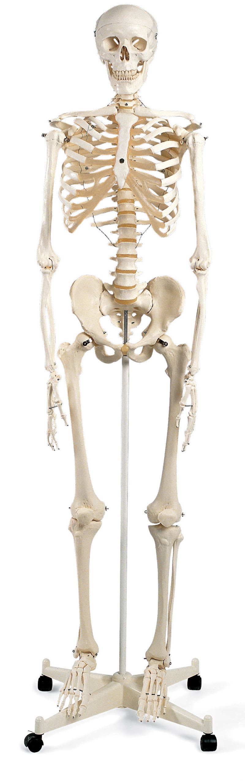 This classic human skeleton model has been the standard anatomical skeleton model of quality in hospitals, schools, universities, and laboratories for over 50 years. Don't settle for imitation anatomical skeleton models which compromise quality in workmanship and materials.
