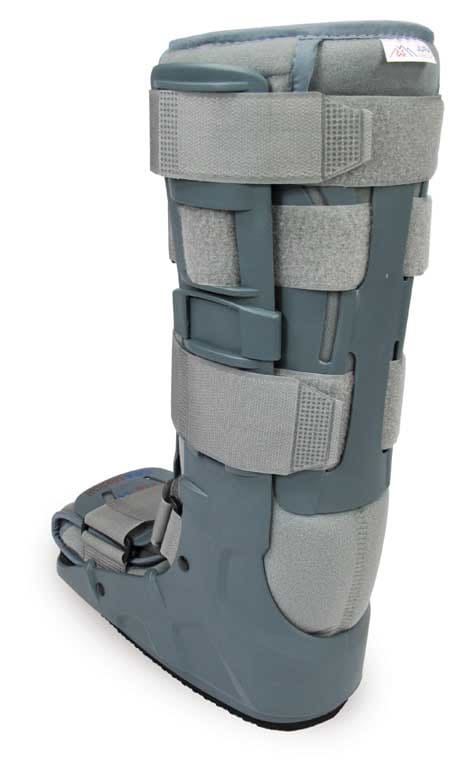 Features a comfortable breathable liner with toe cover. Anterior & posterior shells offer improved stability and immobilisation with velour strap fastening. The shells can be removed for staged rehabilitation.