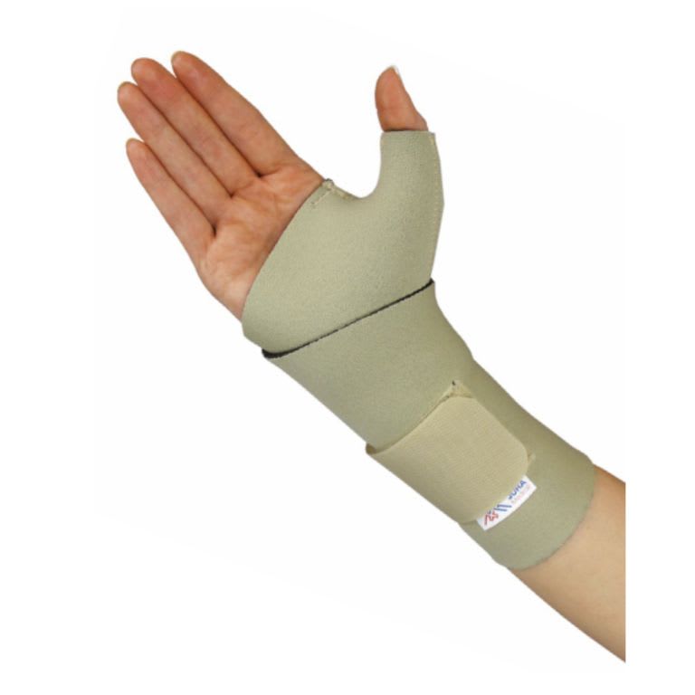 A latex free neoprene with terry plush lining makes this a very comfortable support. Full finger flexion whilst giving good circumferential compression and support to the wrist and thumb. This longer wrist wrap adds to the compression and firmness around the wrist and is easily fastened using hook and loop closures.