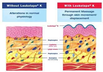 The Leukotape K wave pattern adhesive allows air to circulate and allows full mobility.