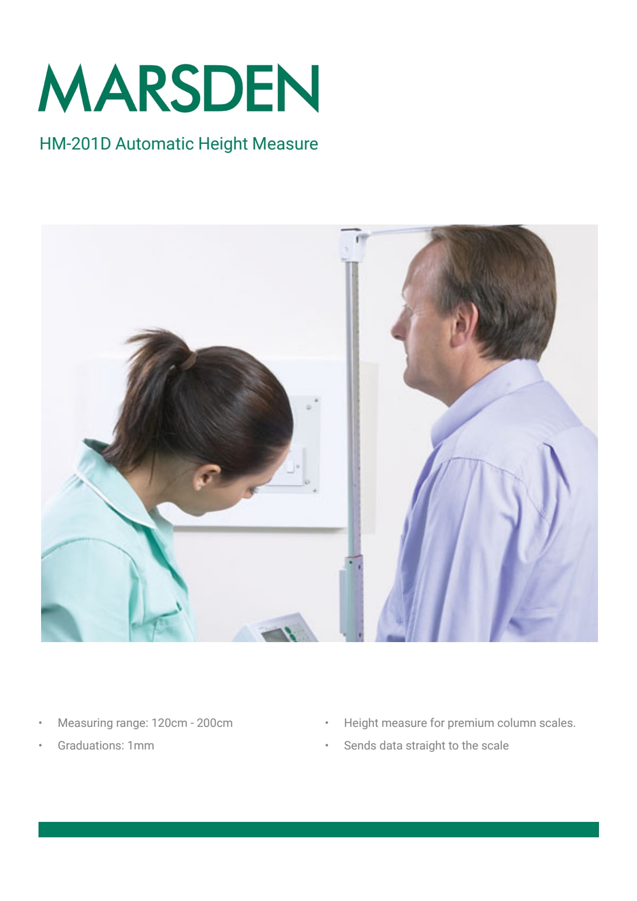 Marsden Auto Digital Height Measure. Marsden HM-201D Auto Height Measure with digital display. Measure attaches to Marsden column scales, displays weight and BMI is automatically calculated.