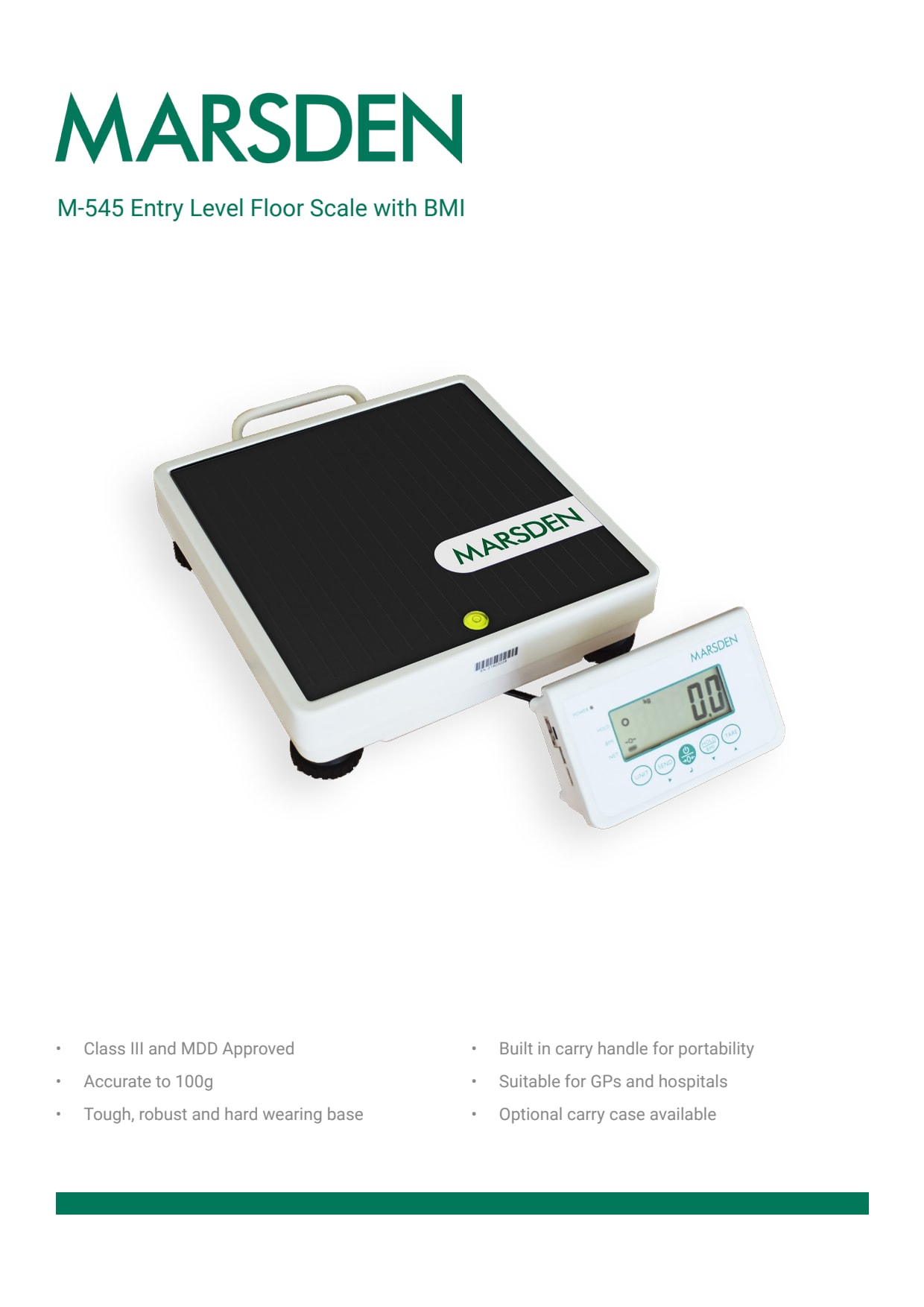 The Marsden M-545 is a portable, affordable Class III Approved stand on scale. It has a separate indicator for carrying out weight readings in sensitive environments, where private readings are essential.