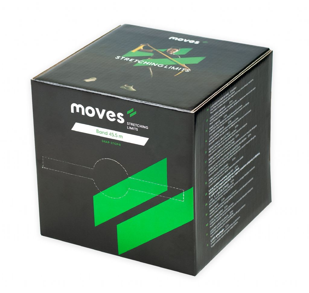 Moves Bands are unique in their field. Thanks to their extensive research and development, they have achieved an innovative production process: the Snap-Stop technology. This distinctive feature will avoid sudden snapping when the band is exposed to high forces, even if there is a cut of puncture!