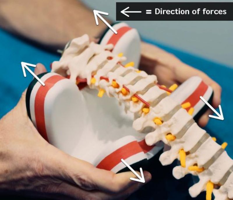 It's forces are applied to upper trapezius bilaterally and the occipital/nuchal region bilaterally. There is no pressure on the mandible and therefore no pressure transmitted through the TMJ (temporomandibular joint). Used as instructed necksaviour applies a therapeutic stretch to the cervical spine and it’s associated soft tissue in a few degrees of flexion.