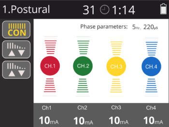 - 2 channel EMG (Biofeedback) combined with 4 channel NMES (stimulation).