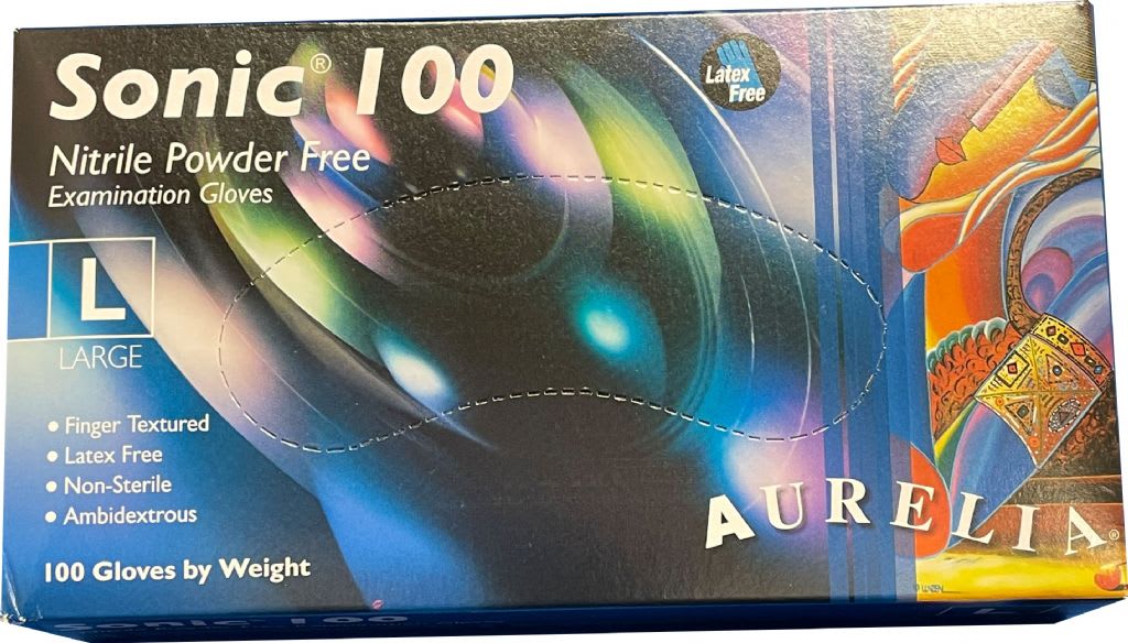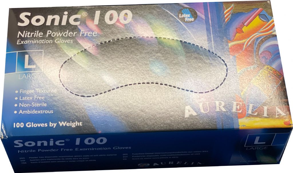 Sonic Nitrile Powder Free Gloves in size Large x 100 gloves per box.