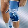 A PSB Knee Brace is a comfortable sport brace, which permits full bending of the knee. The sport brace also exerts pressure around the entire knee joint, making it feel more stable to the wearer. The sport brace contains a pad (stiffener) that supports the patella thereby alleviating any possible additional patella problems. The pressure around the knee joint is easily varied by adjusting the pale blue power net on the brace itself. A PSB Knee Brace will not slip down. This is because of its good fit, the fastening tape around the calf and the silicon strips on the inside.