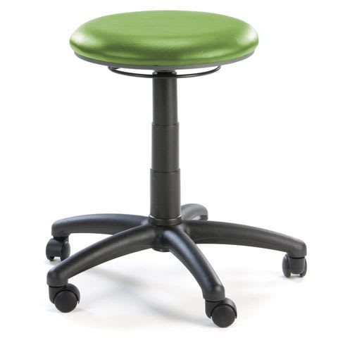 A Flat Top Height Adjustable Stool with a five spoke wheeled base. Many studies have shown that the more time we spend seated, the greater the onset of spinal pain.