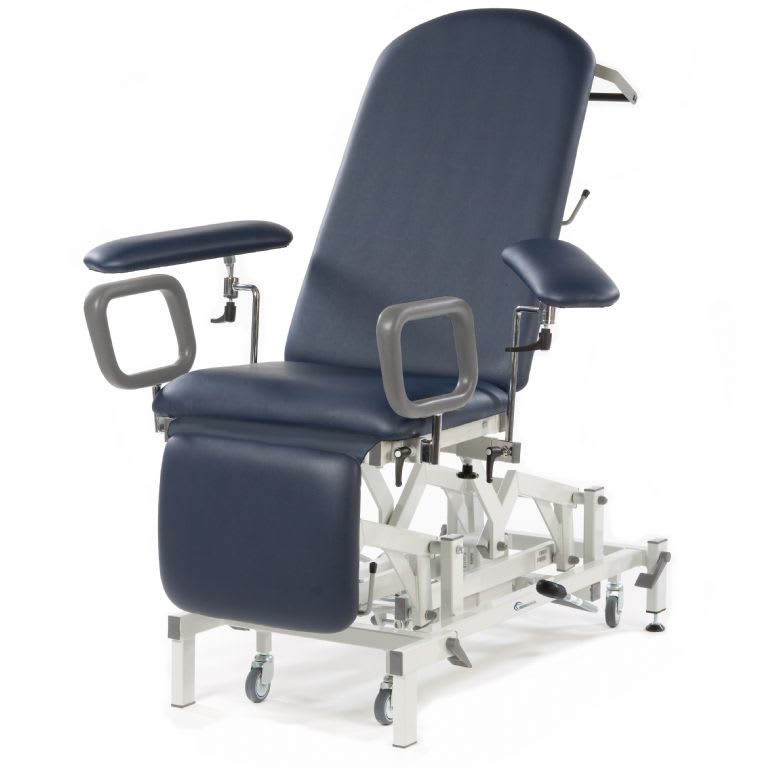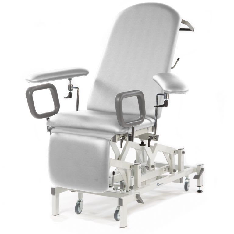 A specialist couch designed to provide a comfortable and easy to mount seat position for blood sampling procedures. All models are fitted with a pair of multi-adjustable arm rests and side support loops for the stability and safety of the patient when mounting and dismounting the couch. The seat section is inclined for additional patient security.