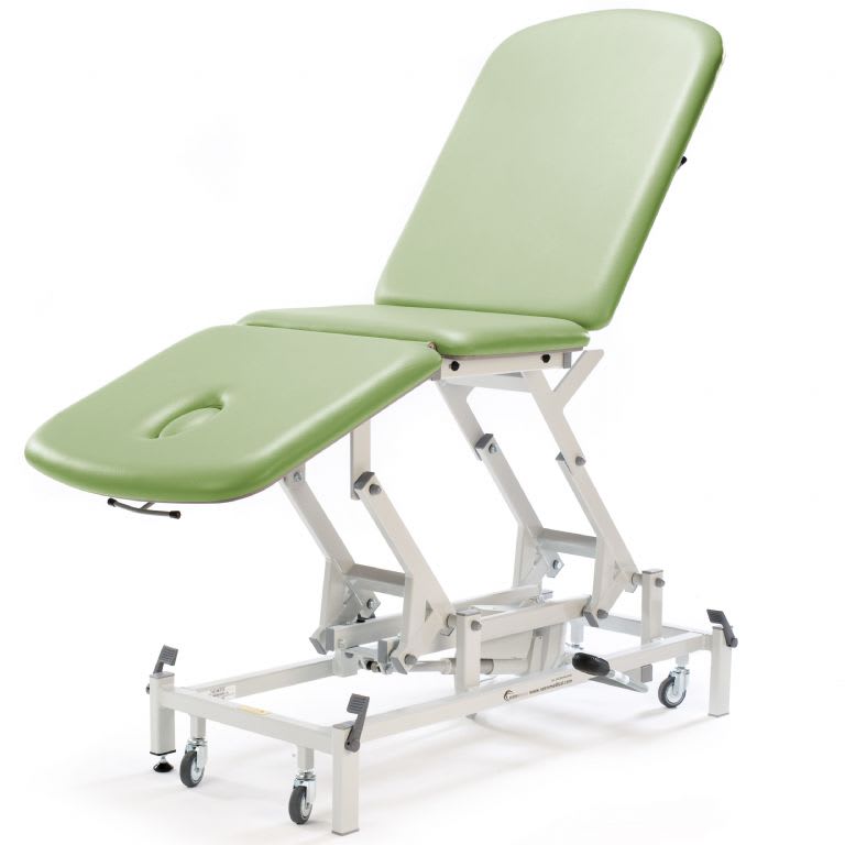 A very strong and rigid 3 section couch with a traditionally long head section to suit a wide range of physiotherapy and general examination procedures.