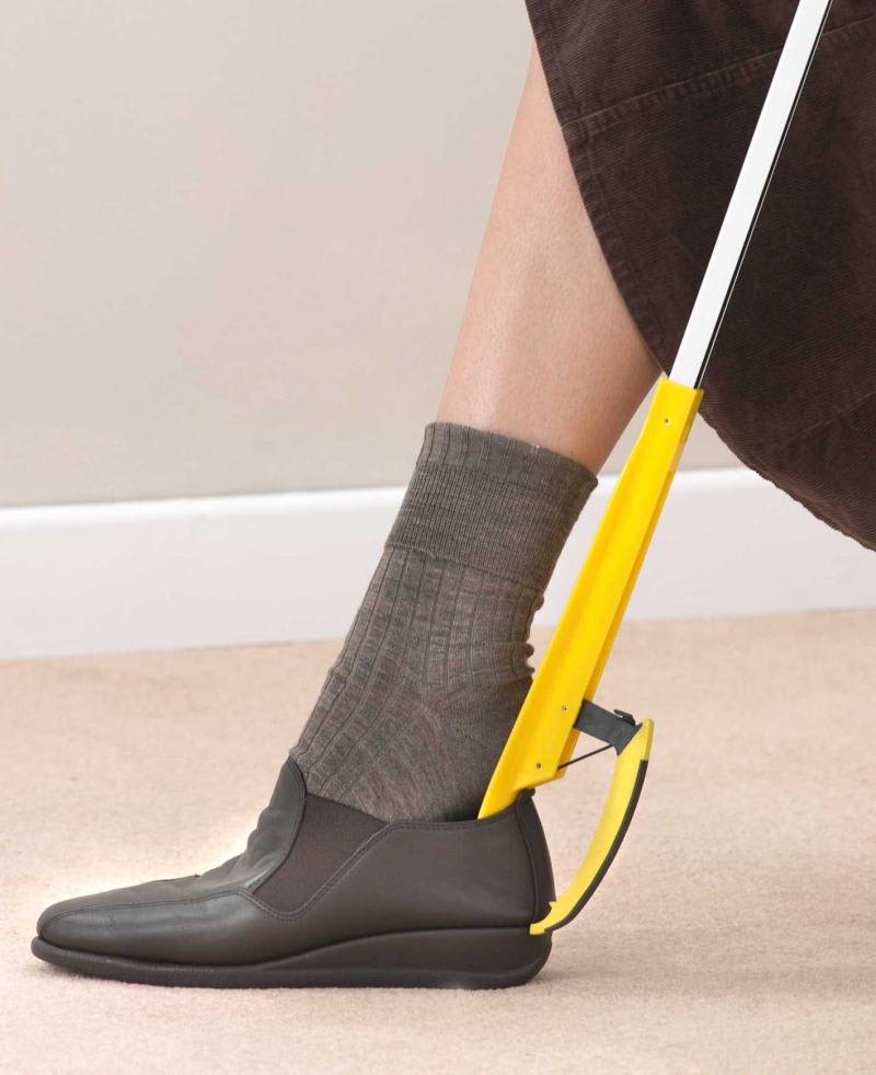 • Easily grab and pull those slippers or shoes to within reach and then, using integral shoe horn, slide the foot in