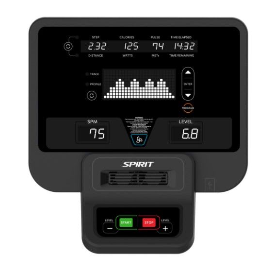 The CS800 Stepper combines the familiar dependent stepping action with an arched step-rail design and impressive 16” maximum step height for an effective lower body workout. The narrow 2” pedal spacing (Q-Factor), large cushioned pedals, and solid handrail design combine to give you an incredibly comfortable and space-efficient cardio unit.