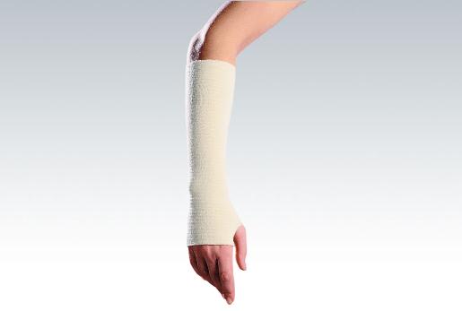 - Tubular elastic bandages stay in place without needing tapes or pins, providing support all the way around a limb or digit.