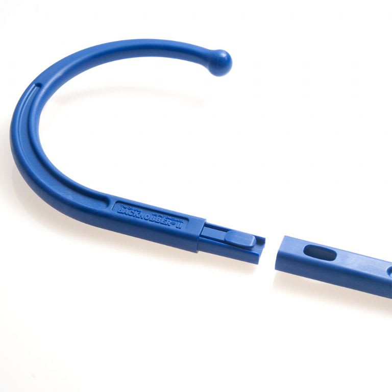 The Backnobber® II massage tool allows the user to apply as much pain releasing pressure as they require. Remarkable effects can be achieved using this device. A locking mechanism permits it to come apart for convenient traveling and storage. The Backnobber® II's natural shape and dimensions allow the user to apply as much pain-releasing pressure for as long as required to achieve its remarkable effects.