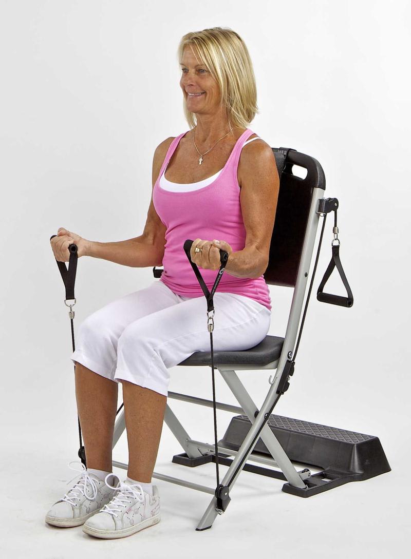 The World's Most Convenient Home Gym: The Resistance Chair™ exercise system allows you to do a full body workout from a safe,comfortable seated position. Because you remain seated, you maintain balance and stability as you exercise your arms, chest, shoulders, abdomen, back, and legs. The patented Resistance Anchor Cable™ system offers a wide range of upper body and lower body exercises and provides smooth, low-impact resistance without use of heavy weights. The Resistance Chair system is made of very strong, commercial-grade construction with thick-wall steel tubing. It's built to withstand frequent use in gyms and rehab centers and has been tested to easily hold up to 400 pounds.